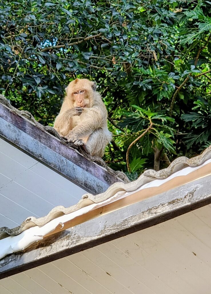 Das Resolution Resort liegt nahe den Pfahlhäusern, einem kleinen Dorf, das wir oft zu Fuß besuchen. Der Weg führt durch dichten Wald – und dort leben sie: Unfassbar viele Affen.