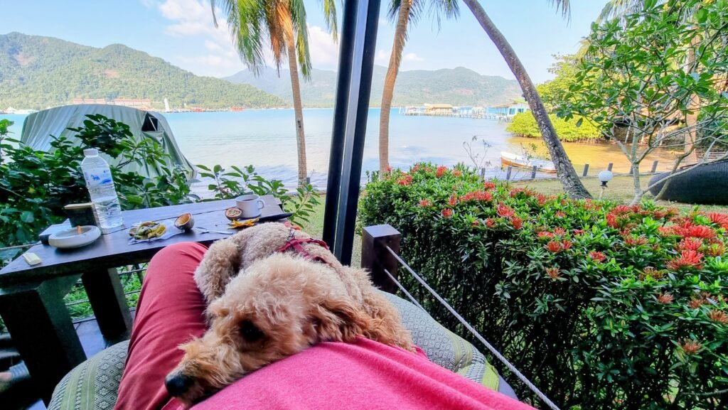 Dort sitze ich eine Stunde. Zwei. Laptop auf, Yumi unter dem Tisch. Draußen zieht Thailand vorbei. Und ich arbeite — besser als an jedem Schreibtisch in Berlin-Kreuzberg.